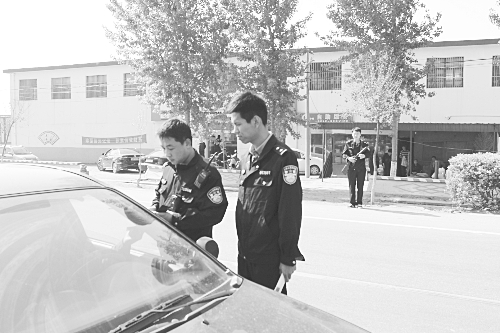 为有效预防和打击各类现行违法犯罪活动,切实维护县城安全稳定,日前,武强县公安局组织开展了武装设卡盘查统一行动。行动中,共出动警力50余人,在进出县城的交通要道上设置卡点3处,盘查嫌疑车辆500余辆,行政拘留违法嫌疑人两名,查获管制刀具5把。图为民警盘查嫌疑车辆。