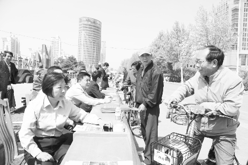 进一步促进依法行政,近日,秦皇岛市中级人民法院联合市政府法治办,组织市公安局、市工商局、市人力资源和社会保障局、海港区人民政府等多家单位,开展了一次集中宣传新修改《行政诉讼法》活动。图为宣传活动现场。