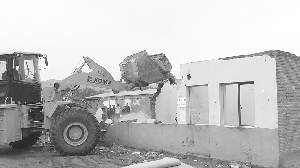 近日,丰宁满族自治县拆迁办在大阁镇政府、公安局、等部门的积极配合下,由县城管局组织40余名执法人员,动用两台大型机械设备,对该县北新区9处违法建筑物进行了强制性拆除,拆除面积800余平方米。