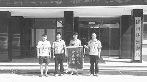 日前,饶阳县西关村村民葛某将一面印有“立警为民,神速破案”的锦旗送至饶阳县公安局刑警大队,对民警不辞辛劳,为其追回被盗摩托车表示感谢。吕露 摄