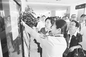 图为代表们在饶有兴趣地参观。