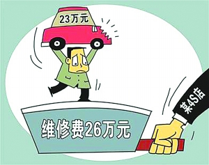 来自河南南阳的李先生怎么也没有想到,自己花23万元买的轿车送4S店拆检后却被告知需要26万元才能修好。“如果我不修,4S店说也得支付5.2万元的拆检费以及4000多元的停车管理费和拖车费。后来各方关注,经协商,我支付了1.35万元费用后,才将车拉走。”7月9日,当事人李先生对记者说。(7月10日《工人日报》)