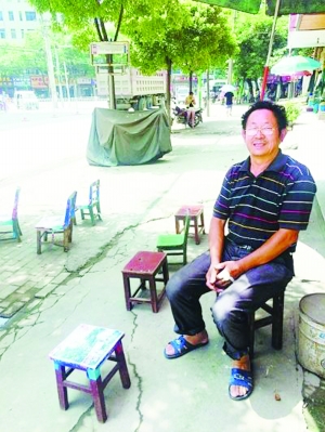 湖北武汉江夏区武昌大道二道口公交车站是个简易车站,无棚无座,一年多来,附近副食店老板熊国平师傅坚持每天摆出十几只小凳供等车乘客歇脚,撑两把大伞供人遮阳。熊师傅的举动感动了乘客,被网友称赞为“最美板凳大爷”。