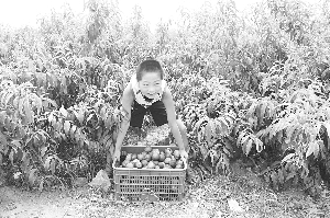 前几日,到某县采访看到道路边一大片油桃林,顿时被眼前的景色迷住了,情不自禁地走了进去。此时正值油桃成熟的季节,红里泛着黄的大油桃,看上去馋的人口水直流。顺手摘下一个大桃子,放在嘴里咬上一口,真是酸酸甜甜爽口极了。