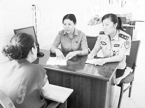 为提高对在押人员的教育质量,唐山市冀东地区检察院驻所检察官与唐山市第一看守所民警一起,认真了解女性在押人员的改造情况,帮助她们稳定情绪,化解内心的困惑和压力。图为7月19日,检察官和民警与一名女性在押人员谈心。