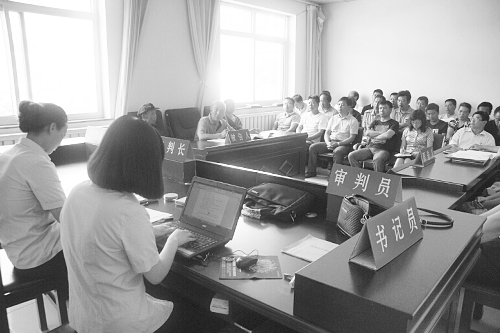 7月29日,平泉县及道虎沟乡人大代表一行30余人,来到平泉县人民法院道虎沟法庭,旁听一起案件简易程序审理。庭审之后,法院组织代表们谈体会、提建议,全面接受监督。图为人大代表正在旁听案件审理。 刘丽伟 周煜 摄