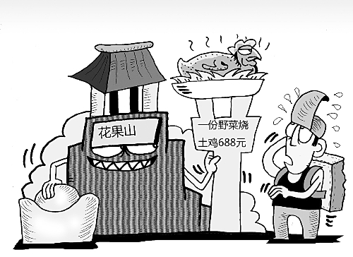 近日,扬州游客吴先生在连云港花果山景区游玩后,在景区门外一家饭店消费的时候,遭遇店家宰客。根据吴先生曝光的菜单,当天他一共点了9个菜,账单价钱高达2012元,其中一份野菜红烧土鸡更是被标出“天价”688元。后在警方的调解下,吴先生给了1000元了事。目前,连云港市物价部门已经介入调查,相关工作人员表示,调查结果会尽快进行通报。