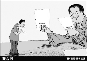 “幕后合同”:一些民营企业在制定劳动合同时根本不与劳动者协商,也不向劳动者讲明合同内容,甚至有些合同条款与法规相抵触。劳动者如果签订这样的合同而使合法权益受到侵害,可向当地劳动仲裁机构申请裁定该合同为无效合同。