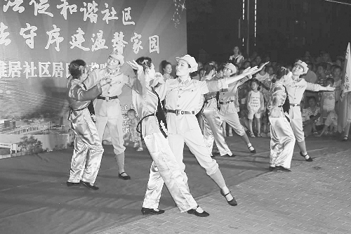 8月10日晚,黄骅市司法局、黄骅市普法办和骅东街道办雅居居委会联合主办了一场以“‘六五’普法促和谐,知法守序建温馨家园”为主题的社区文艺晚会。整台晚会由居民自编自演,以喜闻乐见的形式,将法律知识与艺术表演很好地融合在一起。图为演出现场。本报记者 陈兆扬 摄