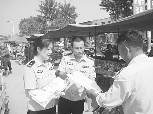 为让村民了解户籍制度改革工作的意义,9月8日上午,石家庄市鹿泉区公安局李村乡派出所户籍民警在辖区农贸市场前集中开展了户籍制度改革宣传活动。图为民警向群众发放宣传资料。郄世民 摄