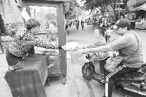 图①:67岁的王长增老人,经营现烤现卖“伊品斋”点心20余年,其牌下的月饼深受顾客欢迎。老人说,这是因为他的月饼包的馅是三个字:“真、洁、实”。