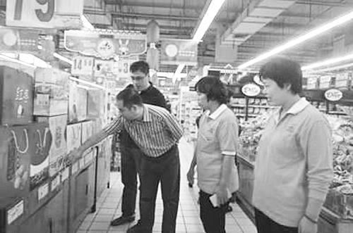 为加强市场价格监管,优化节日期间市场秩序,切实维护消费者和经营者的合法权益,9月22日石家庄市物价局开展“中秋”“国庆”节日市场巡查,重点对超市虚假标价、模糊价格、散布涨价信息等欺诈消费者行为进行了规范。图为物价执法人员在新华区某超市检查商品价格。