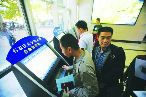 日前,石家庄市公安局出入境管理支队推出出入境综合服务平台、市区排队叫号系统、自助服务“一条龙”、公民出国(境)证件免填表申请等多项新举措,方便省会市民办理护照。图为10月15日,市民到石家庄市出入境大厅使用自助填单机填写资料,短短十几秒的时间就完成了整个流程。