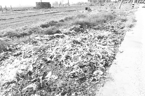 近日,记者在深泽县个别村庄发现,庄稼地里有焚烧秸秆现象,有的甚至将秸秆与生活垃圾混在一起进行焚烧,不但对环境造成污染,也存在着安全隐患。图为道路旁焚烧秸秆后所丢弃的焚烧物以及各类生活垃圾。