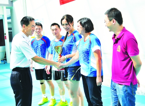 9月25日上午,邢台市法院系统第三届羽毛球总决赛在宁晋县人民法院举行。经过激烈角逐,邢台市中级人民法院奋勇夺冠、清河—威县法院队、宁晋法院队分列第二、三名。比赛开幕式由宁晋法院院长刘月华致欢迎词,为保障比赛顺利进行,宁晋法院制订方案,精心准备,认真部署,赛前对场地重新铺胶,并购置比赛专用设备,同时召开预备会,对各个岗位负责人员进行规则培训,确保比赛有序开展。图为邢台中院党组成员、政治部主任吴章彬向荣获冠军的运动员表示祝贺。