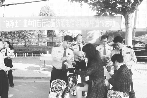 10月13日,平乡县公安局民警走上街头开展防范电信诈骗宣传活动,向群众发放宣传资料,并现场接受群众咨询,答疑解惑。同时,民警倡导群众,要向周边的人广泛宣传,并发动群众主动揭发违法犯罪行为。