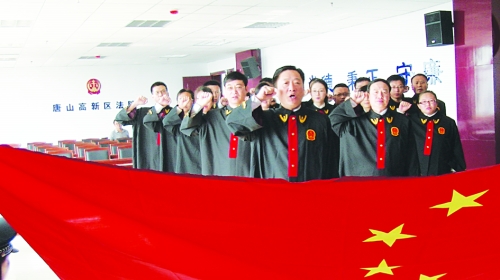 唐山高新技术产业开发区法院法官面对国旗庄严宣誓