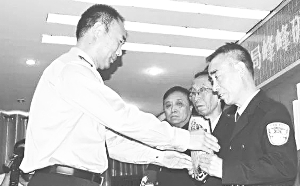 本报讯 (王丽)伴随着悠扬的音乐,荧屏上闪烁出“光荣从警,无悔今生”八个大字,台下的老民警眼中饱含热泪,年轻民警情绪激昂……10月14日,邯郸市公安局在峰峰矿区分局举行了民警退休暨新警入警荣誉仪式。据了解,举行民警退休暨新警入警荣誉仪式在全省公安机关尚属首例。