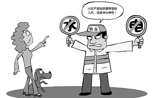 日前,家住吉林松原市的张女士回家时发现一楼墙上多了一张“通知”,上面写着:“本区严禁饲养携带宠物入内,违者停水停电,本公司只为人民服务,与畜生无缘!”相关律师则表示,物业公司作为服务机构,没有权力不让业主养宠物,更没有权力对业主停水、停电、罚款,业主大会或业主委员会可以制定相关规定。但居民应该文明养犬,避免给他人带来伤害。