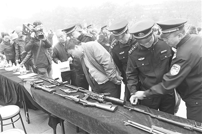本报讯 (记者 鲍娜军)11月5日上午9时,石家庄市公安局按照全省公安机关统一销毁非法枪支工作部署,在全市24个县(市)区繁华地点、广场等处开展了“收缴枪爆物品集中行动宣传日”活动。主会场设在省会怀特商城门前广场,由市公安局治安支队与裕华公安分局共同举办。活动中共出动警力150名,悬挂宣传横幅90条,设置宣传展板192个,发放宣传材料8000余份,活动受众1万余人。