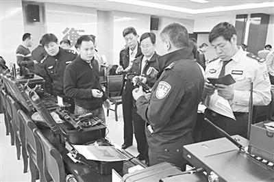 为进一步落实警务实战装备保障机制建设工作要求,更好地满足公安业务工作的实战需要,近日,市公安局组织召开了公安装备现场展示会。省公安厅警务保障部装备科科长刘志涛应邀到会指导,市公安局党委副书记、副局长张杰出席会议,市公安局警务保障处、特警支队、治安支队,各县市区公安(分)局分管局领导和警务保障室主任参加了会议。会上,法国军工产业集团和河北冀华安防设备有限公司展示了其生产的防护装备、信息通信装备、刑事技术装备、侦查技术装备、反恐救援装备等警用装备。通讯员 郭建博 摄