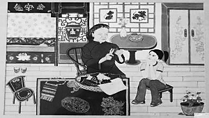 晚上,借着昏暗的灯光,我好奇地凑近那些贴着鲜艳剪纸的笸箩,画面种类繁多,有乡村男娃女娃,也有肥头大耳的猪仔,还有滴溜溜小眼睛,狡黠的老鼠。我看得出神,外婆便拿出笸箩,摊开已经剪好的喜字,那是办喜事的乡亲求她剪的窗花。我好奇外婆怎么有这爱好,她轻叹一声:“过穷日子时,啥是乐趣啊,看着院里的鸡鸭猪狗就想剪出来,发愁的事就全忘了。可惜啦,这手艺没人学啊!丫头,你乐意学吗?”我不加思索连连摇头,外婆苦笑着,小眼睛里挤出泪水。