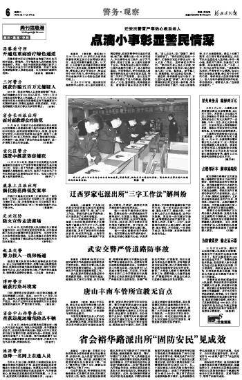 本报讯 (孙淑萍 于大伟)迁西县公安局罗家屯派出所紧密结合辖区实际,采取“早、稳、诚”三字工作法,积极化解社会矛盾纠纷,有力地促进了社会和谐稳定。