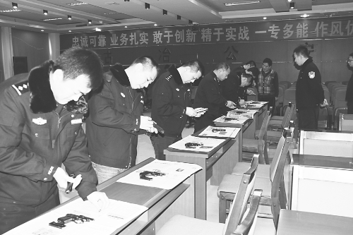 唐山市公安局古冶分局民警进行枪械拆卸和组装训练
