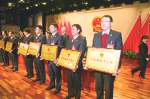 全国检察机关电子检务工程工作会议日前在北京召开,最高人民检察院党组书记、检察长曹建明出席会议并作重要讲话。会上,最高检对荣获全国检察机关“科技强检示范院”称号的144个检察院进行了通报表彰,我省唐山市检察院、邯郸市检察院、邢台市检察院、唐山市路北区检察院、邯郸市邯山区检察院、柏乡县检察院榜上有名。图为省检察院党组成员、唐山市检察院检察长曲波(右一)作为我省检察机关唯一代表赴京登台领奖。 刘子珍 王巍 摄