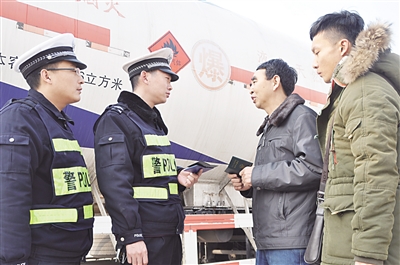12月11日,永年县交警大队开展危险化学品道路运输交通安全集中整治行动,民警深入辖区危化品运输单位,重点对危化品企业资质、车辆运输许可、驾驶人和押运员从业资格等方面进行检查。图为民警正在检查危化品运输车辆驾驶员的相关证件。