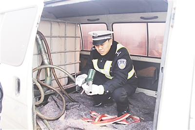 12月21日上午,沧县执勤民警在旧州镇辖区对过往车辆进行检查时,一辆中巴车急速驶来,因车速过快,被执勤民警拦下检查。经检查,驾驶人冯某未带驾驶证,经技术比对该车是套牌车。在检查中,民警闻到了一股浓浓的汽油味,打开后备厢后发现,大约一吨多重的塑料油罐装满了整个后备厢。原来,这是一辆改装后的流动加油车。车主不仅私自改装车辆,而且车内放置易燃易爆物品,冯某驾车时还吸着烟。执勤民警在对冯某进行交通安全教育后,对其作出2550元罚款、驾驶证被依法记13分的处罚。