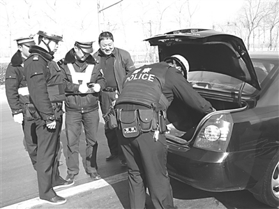 为预防和减少道路交通事故的发生,在“秋收100”整治行动中,高碑店市公安交警大队合理部署,科学安排警力对通行辖区的车辆进行安全检查。图为陈各庄公安检查站民警对过往车辆进行严格细致的检查。 吴迎春 摄