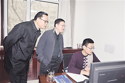 图为省检察院党组副书记、副检察长申占群,省检察院党组成员、政治部主任高树勇在省检察院机关巡考的场面。