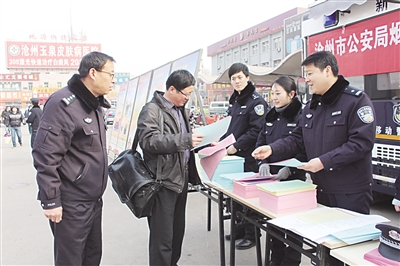 沧州公安局新华分局在火车站广场开展烟花爆竹“百日整治”宣传日活动