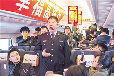 同时,来自石家庄铁路公安处乘警支队的民警李子超直观生动地演示了防盗常识,并与旅客进行现场互动,让旅客学到了安全出行的真本领;来自天津铁路公安处的民警姚旺通过有奖问答“2016版《铁路进站乘车禁止和限制携带物品目录》”的方式,既活跃了车厢的气氛,也为出行旅客增加了知识储备,拉近了警民距离。一位旅客深有感触地说,置身这样的现场,他们真正感受到回家的温暖。