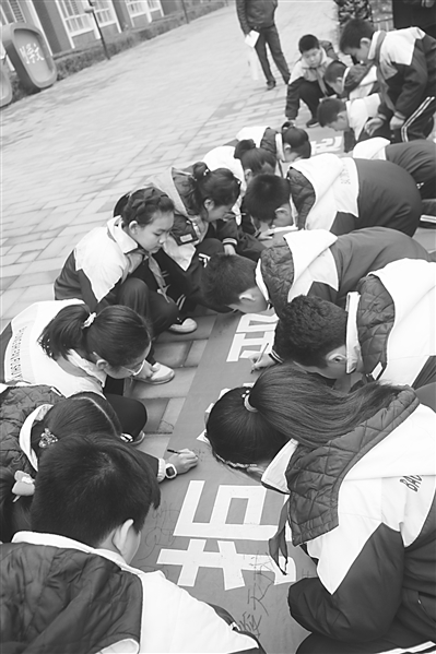 ①主题队会上,两名学生正在作反邪教演讲。②全校师生在学校广场参加反邪教主题大会。③学生们在“拒绝邪教、从我做起”的条幅上郑重签名。 (丹青)