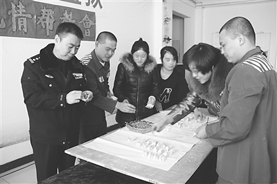 ③监区长与服刑人员及其家属一起包饺子话改造。