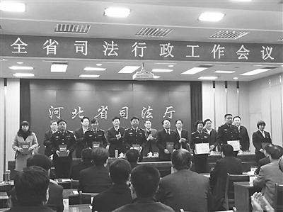 本报2月2日讯 (记者 王玉朝 张世杰)今天下午,全省司法行政工作会议在石家庄召开,会议主要传达中央政法工作会议、全国司法厅(局)长会议和全省政法工作会议精神,对2015年全省司法行政工作进行回顾和总结,对今后一个时期全省司法行政工作进行研究部署。省司法厅党委书记、厅长穆思山出席会议并讲话。会议还对全省司法行政系统先进集体和先进工作者进行了表彰。