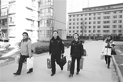连续加班,壮年的他累倒在单位,开颅手术虽救回一条命,但家中的顶梁柱从此缠绵病榻,至今生活无法自理;事故救援,年轻的高速交警被疾驰而来的汽车撞飞,家中只剩日渐老去的娘亲……因为牺牲,因为病痛,因为命运的陡然逆转,这些原本生活平静的警察家庭陷入困境,难以自拔。2月2日至4日,省公安厅政治部、河北公安英烈基金会启动“送暖”行动,分别为石家庄、邢台、衡水三地8个特殊警察家庭送上爱心企业赞助的米面油等生活用品(图③)或慰问金,带来了厅党委对他们的殷殷关爱。