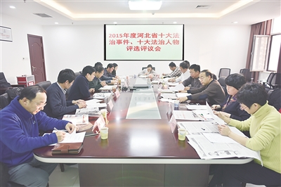 日前,由省委宣传部、省委政法委、省司法厅和省人大常委会法工委、省法院、省检察院、省公安厅、省政府法治办、河北日报报业集团、河北电视台、河北法治报社有关人员组成评选委员会,对候选法治事件和候选法治人物进行投票和评议。评委会经过认真评议和现场投票,最终确定了河北省2015年度十大法治事件和十大法治人物。