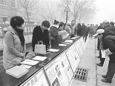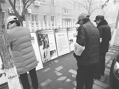 ①社区里广大群众在反邪教宣传展板前驻足细读。