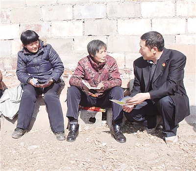 为切实维护农村留守妇女、留守儿童、留守老人的合法权益,邢台县人民法院法官利用下乡办案时机,重点针对涉及家暴、赡养、抚养、监护、教育等类型案件及农村留守群体普遍关心的实用法律问题开展宣传。图为2月25日,该院执行局法官在办案途中为“三留守”人员讲解相关法律知识。
