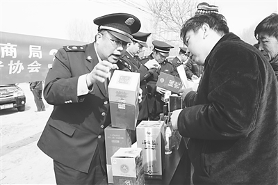 3月8日,固安县工商局、消费者协会在宫村镇东湾大集举行 “3·15”消费维权进农村宣传咨询服务活动。在活动现场,工商干部耐心地为每一位前来咨询的农民群众讲解法律法规及真假商品鉴别方法,解答他们提出的各类消费问题。 李永超 郭书民 摄