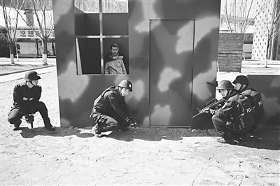 张家口市公安机关自3月15日起组织全市各级公安机关民警集中开展了“2016警务实战春训秋考”活动。图为参训民警在开展解救人质演练。
