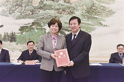 张越向当选的主任、副主任和各位委员表示祝贺,并为他们颁发了聘书。