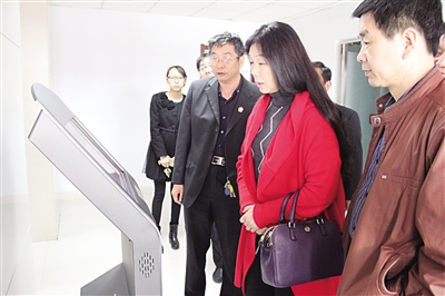 图为省法院调研组试用查询系统。