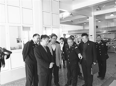 4月20日,唐山市人民检察院副检察长冯振东、李学军,冀东地区人民检察院检察长张庆来等一行来到省监狱管理局冀东分局调研刑事执行检察工作,他们与冀东分局负责领导同志就如何加强刑事执行检察工作进行了深入座谈交流。图为调研组一行深入监区检查。