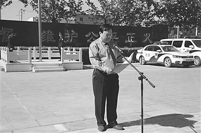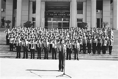 上图为检察官在举行“升国旗、唱国歌、检察官宣誓”活动。