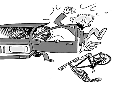 前不久,沧县一出租车沿市区永安大道由北向南行驶至文承苑东门附近。乘客打开车门准备下车,这时一载人自行车顺行至此地撞到车门上,骑乘自行车的两个年轻人当场倒地,出租车司机负全部责任。
