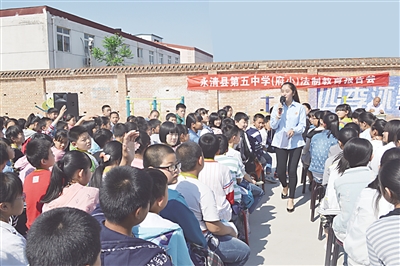 国务院教育督导委员会办公室《关于开展校园欺凌专项整治的通知》下发后,永清县人民法院以“友善校园、抵制暴力”为主题,启动系列校园普法活动。该院少年法庭的法官日前分别来到永清县第五中学、王府社区小学和县第二中学,针对中小学生敏感、易冲动、缺乏自我控制力、极易受外界诱惑等特点,有针对性地剖析校园欺凌的概念及危害,结合典型案例,用浅显易懂的语言说明法理,用触目惊心的案例加深学生们的认识,取得了很好的教育效果。 邱福生 任向禹 摄